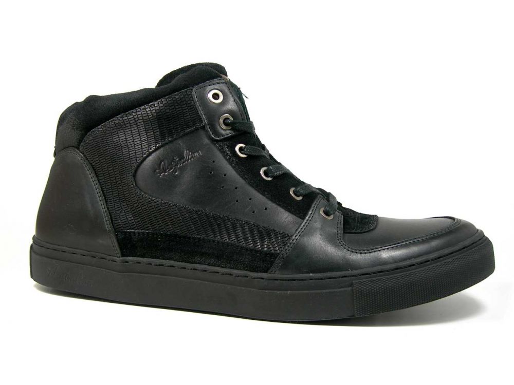 Sportieve halfhoge veterschoen, type Neville leather, met uitneembaar voetbed. Zwart, leer met suede.Dit betreft een outlet product. Niet in de winkel te koop, uitsluitend via de webshop.