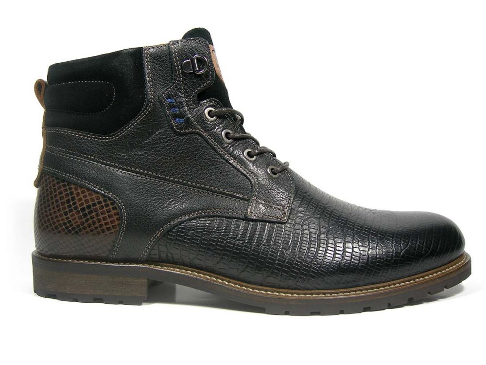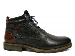 Schoen model Rick van Australian Footwear is gemaakt van 100% leer en heeft een iets hogere schachthoogte. Hierdoor valt de herenschoen tussen chique en casual in. Opvallend door het contrast en de met de hand aangebrachte details. De veterschoenen zijn vervaardigd uit in verschillende texturen leer en suede. Het uitneembare voetbed biedt alle comfort en is gemaakt van leer. Kleur: Black / tan