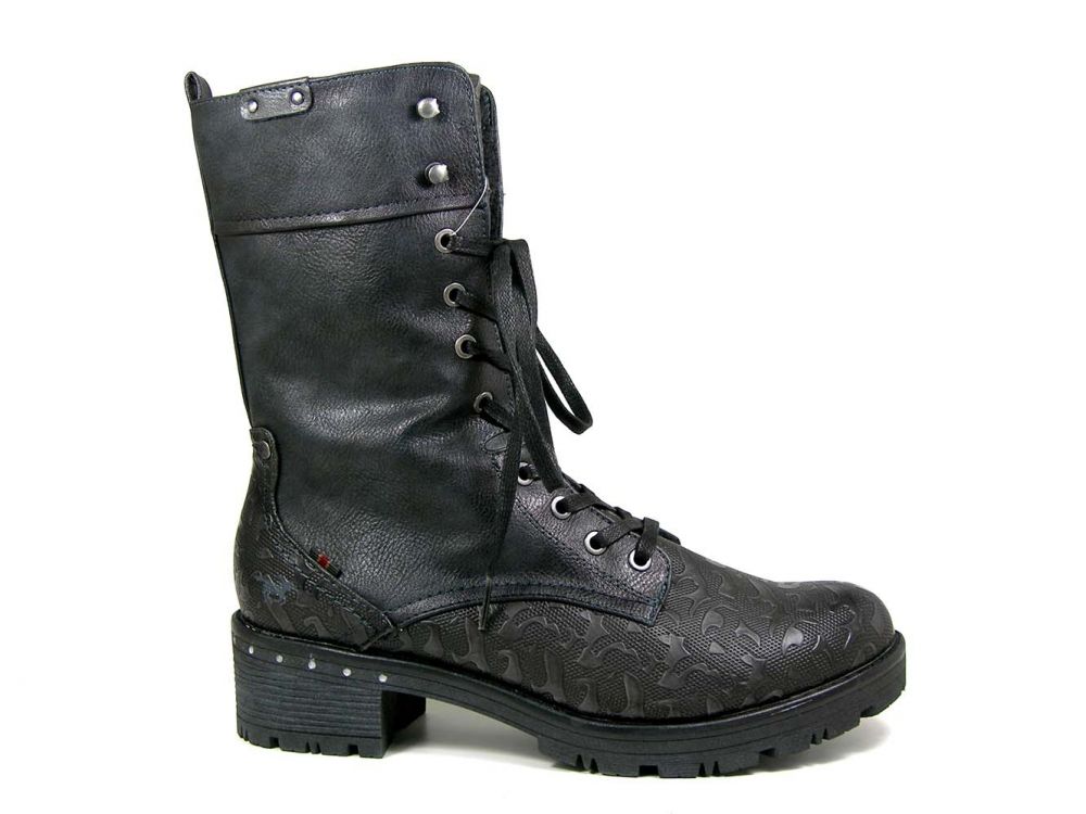 Gevoerde hoge veterboot met rits. Graphit, synthetisch leer.