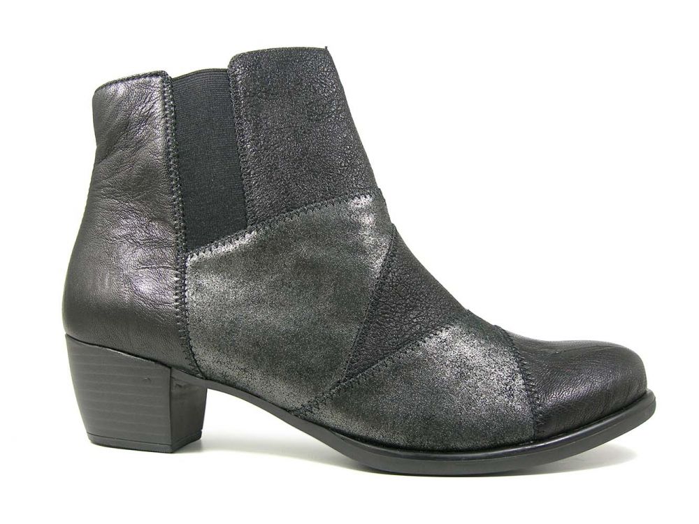 Enkellaars met hakje en rits. Uitneembaar voetbed. Zwart, leer.