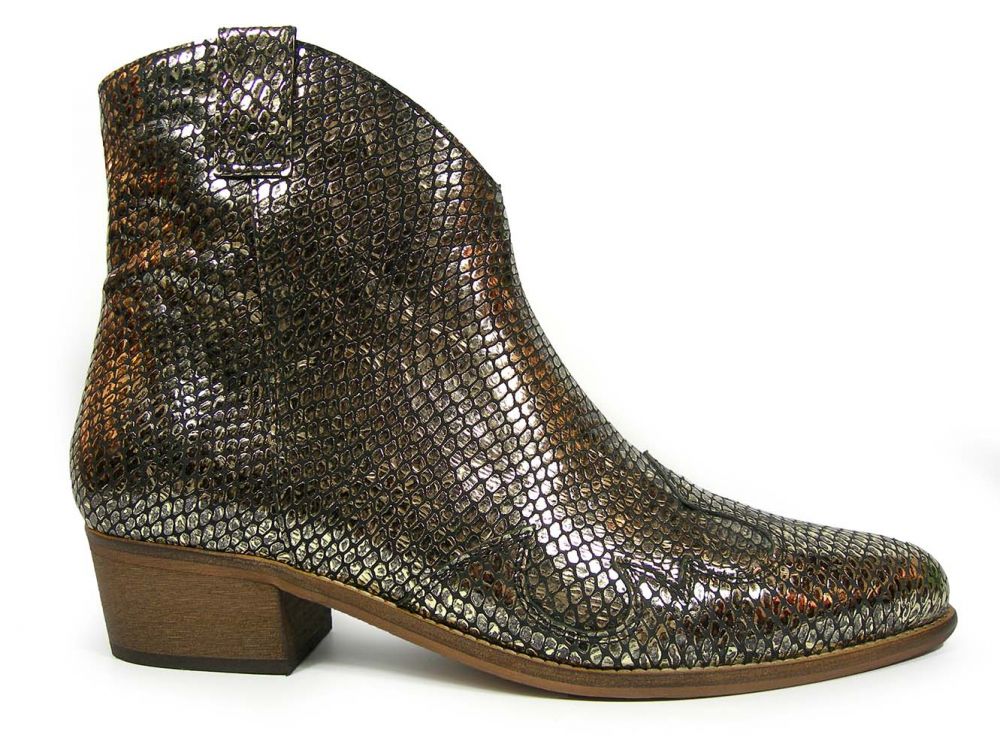 Dit stoere laarsje onderscheidt zich door zijn zachte en soepele Italiaanse leer met print. Met een comfortabele pasvorm en doordachte details, is dit de perfecte keuze voor de vrouw die stijl en comfort zoekt. Met een rits aan de binnenkant, waardoor je gemakkelijk in en uit de laarsjes kunt stappen. Het uitneembare leren zooltje voegt extra gemak toe, waardoor je de perfecte pasvorm kunt creëren dat ervoor zorgt dat je de hele dag moeiteloos kunt rondlopen. De prachtige champagne kleur maakt dit laarsje veelzijdig en gemakkelijk te combineren met verschillende outfits. Het is de ideale keuze om je stijl naar een hoger niveau te tillen.